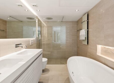 Each bathroom is a sanctuary of relaxation, featuring high-end fixtures and finishes that exude a sense of opulence. The villa's interior is a testament to contemporary design, with high ceilings, large windows, and an abundance of natural light that creates a warm and inviting atmosphere.